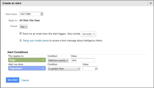 Answer this how often do you check traffic to your 404 page? If you are like most people you hardly ever or neglect it completely. However from a user experience as well as a search engine perspective it does not fulfil expectations. It is not overly complicated to keep an eye on your 404 page traffic. You can use Google Analytics to alert you to 404 traffic, especially if you are getting more than a certain number of those visits in a day. Here’s how: