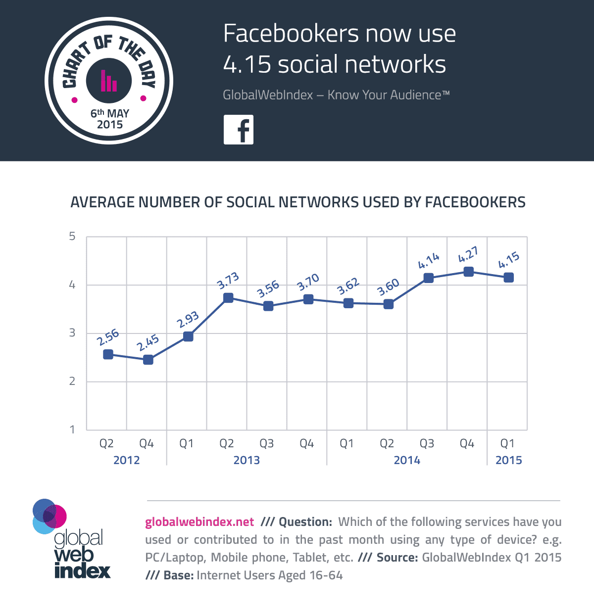 Facebook users use on average around 4.15 social media networks. Which means they spend a fair bit of their time on social media and network across a few different social media networks.