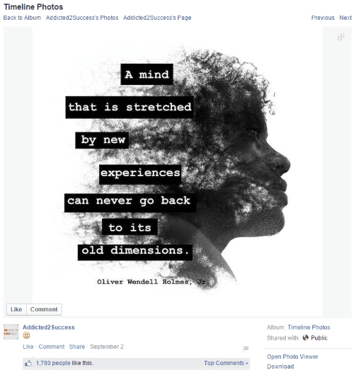 Quotes and especially inspirational quotes have stood the test of time in terms of being sought after and shared. People love to be inspired and social media allows people to connect with and encourage each other. Engaging people with quotes can be as simple as psoting your favourite quote on Quozio, or using a simple back ground or relevant photo on which you overlay the text of your quote.