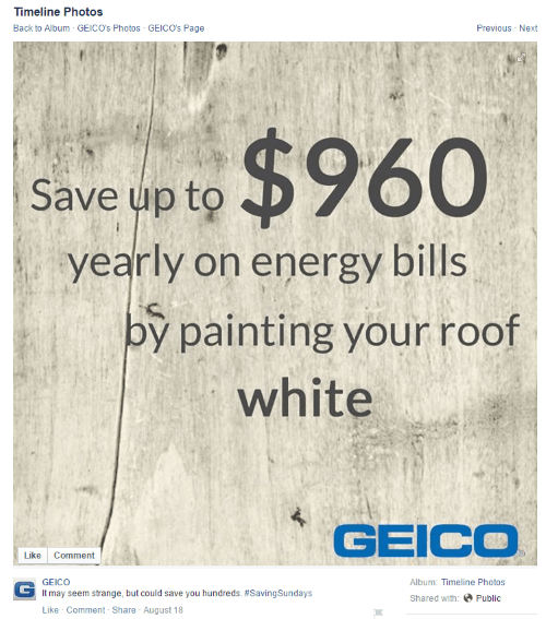 Geico with their #SavingSundays, feature tips that makes money sense to households.
